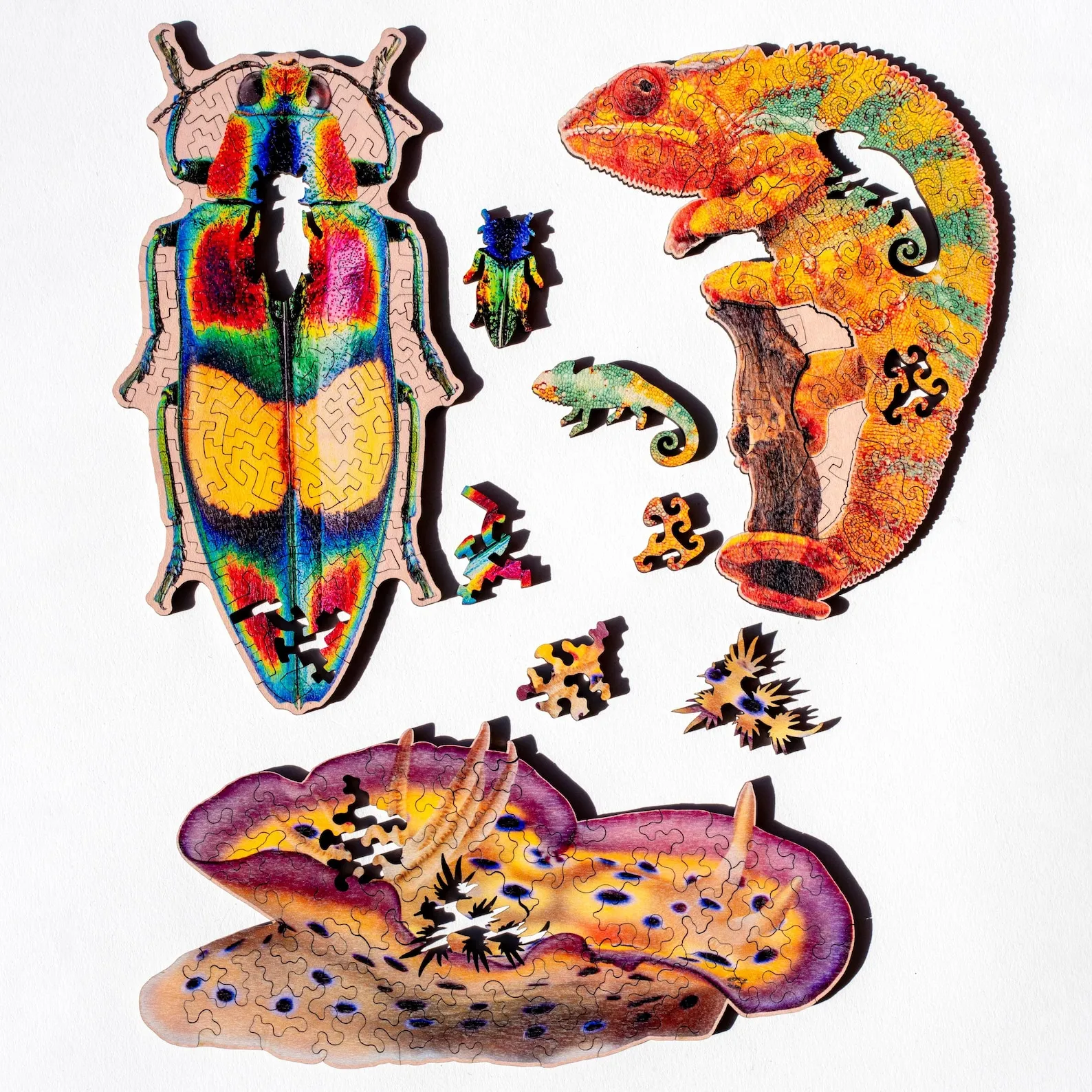 The Chameleon Mini Wooden Jigsaw Puzzle is a small-format build with a bright chameleon theme and a clean laser-cut finish. Mini puzzles are great when you want a complete, satisfying session without committing your whole afternoon, and this one is easy to set up on a desk, coffee table, or travel tray. The artwork uses bold color contrasts and curved shapes, which helps you sort pieces quickly and build clusters that click into place. Wooden pieces feel firm and smooth, so you can pick up and test connections without worrying about flimsy bends. As you connect the chameleon image, you’ll notice how the color changes guide you across the body, tail, and surrounding details, keeping the build lively from start to finish. This is also a nice choice for gifting to reptile fans or anyone who enjoys small, themed tabletop activities. Keep the pieces dry, store them flat, and avoid direct heat to help maintain the surface print and edge quality over time. Tip: mini puzzles are great for warmups; try timing yourself on a second build for a fun benchmark without changing the puzzle itself. A small felt mat can help prevent pieces from sliding on smooth tables. The compact size also makes it easy to finish on a lunch break, while still offering enough detail to feel rewarding.