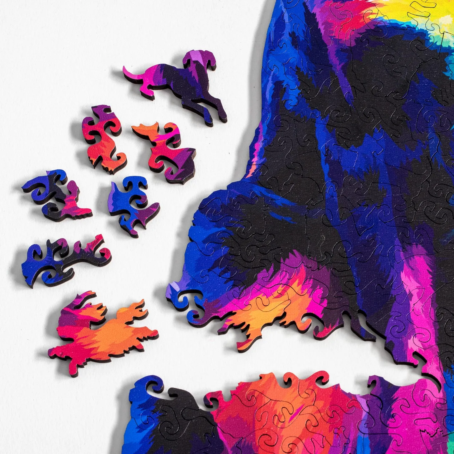 Celebrate your love of dogs with the Dog Pack Wooden Jigsaw Puzzle, a themed build that centers on a group “pack” concept and strong, readable artwork. Wooden pieces give the puzzle a solid feel in hand, with firm edges that make sorting and connection-testing feel controlled and satisfying. Begin by pulling out the most distinctive colors and facial details, then build small sections that later connect into the full composition. Dog-themed images are especially fun because you can work by features—ears, noses, eyes, collars, and background accents—so you’re rarely stuck with endless same-color texture. As the puzzle comes together, the pack scene becomes clearer and more expressive, which makes the final stage rewarding rather than tedious. This puzzle suits family tables, casual weekend sessions, or a gift for someone who keeps dog photos on their phone. To help the surface stay crisp, keep the pieces away from moisture, store them flat, and avoid sliding heavy objects across the finished build. Tip: if several dogs share similar colors, focus on outline shapes first (ears and snouts), then use small color accents to confirm placement. A lint-free cloth under the build can make handling more comfortable. Once complete, the pack-themed image looks great for photos, and the wooden feel makes it a pleasant, tactile activity to revisit.