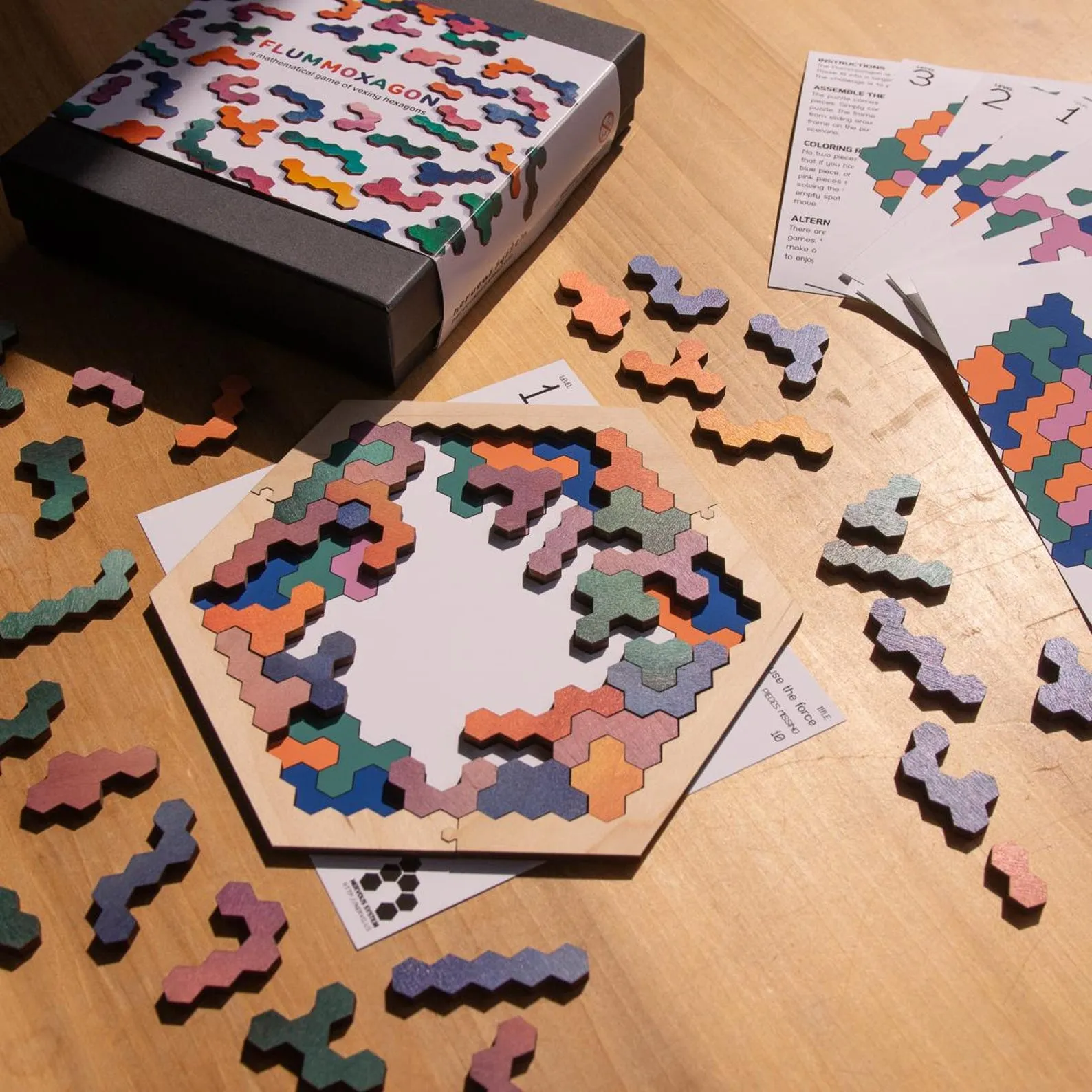 Flummoxagon is a geometric wooden puzzle game designed around satisfying shapes, clean lines, and strategy-friendly placement. Instead of relying only on a picture, this style of puzzle invites you to think in patterns: how angles meet, how edges align, and how a small move can unlock a larger section. The wooden pieces feel solid in hand, making it easier to rotate and test-fit shapes without bending or creasing. You can approach the challenge in different ways—by building outward from a stable core, by matching repeating angles, or by sorting pieces into “families” that share similar corners. Because it’s a game-like puzzle, it’s easy to take breaks and resume without losing your place: simply keep the partial layout on a flat surface or photograph your progress. It’s a great choice for anyone who enjoys spatial reasoning, tidy tabletop activities, and that “aha” moment when a stubborn gap finally closes. Keep pieces dry and store them together so the set stays complete and ready for the next session. Tip: when stuck, rotate a piece 180 degrees and re-check angles—geometric sets often hide solutions in plain sight. It’s also fun to challenge yourself to finish without looking at a reference image. Because the shapes are reusable, you can replay the set many times and challenge yourself with faster solves or cleaner layouts.